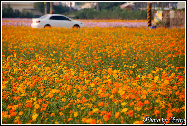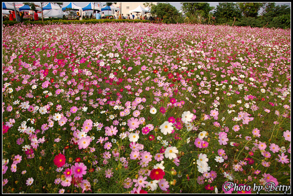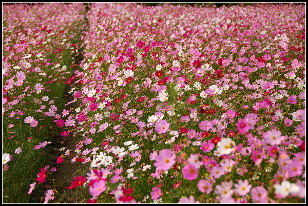 本來以為只有粉紅、紅及白色的波斯菊形成的花海