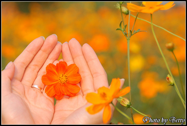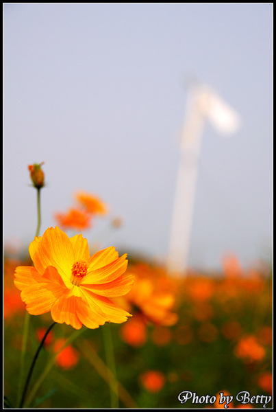橘黃色的波斯菊,比起粉色系的花