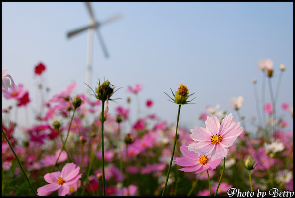花海旁的風車轉個不停