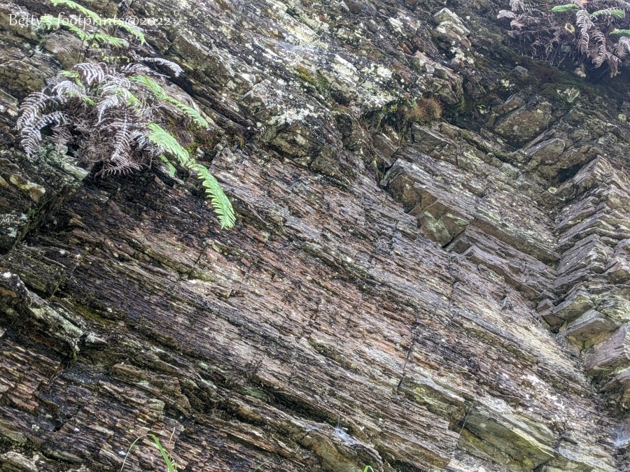 這種岩石是海底沉積的頁岩,經過高溫高壓變成了板岩